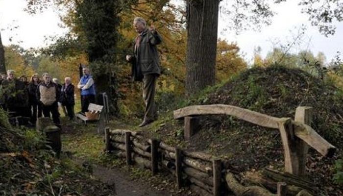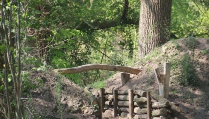 Een reconstructie van een landweer die ooit op deze locatie heeft gelopen. Landweren zijn stukken terrein die dienden als grenzen.