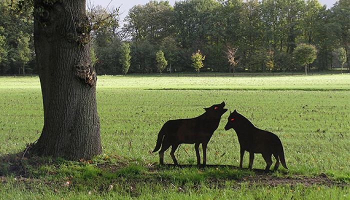 Op Landgoed Weleveld staan twee wolven, die symbool staan voor het wapen van Weleveld.